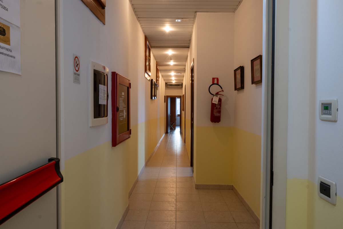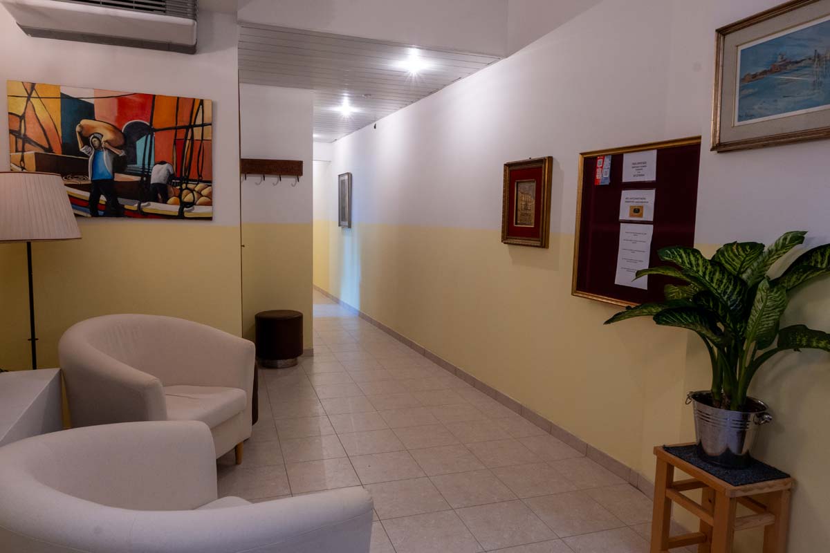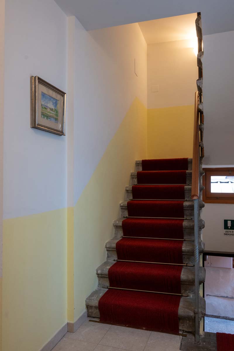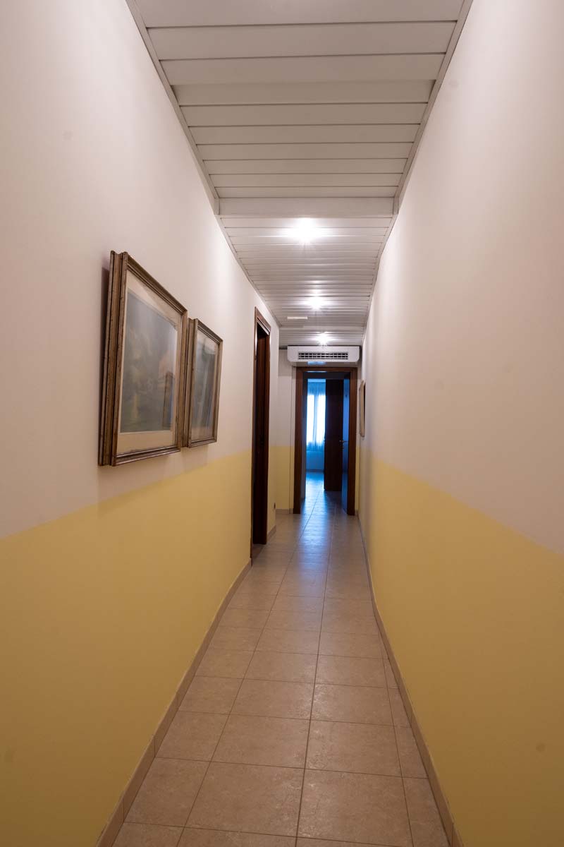 Accedendo per la rampa di scale si raggiunge il primo piano dell’edificio. Affacciato su un rigoglioso giardino privato. Ogni ambiente è ben illuminato e tranquillo e le camere adatte ad ogni soluzione di viaggio.