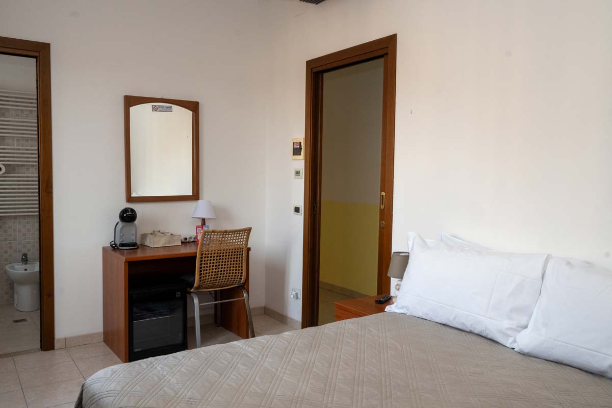 Le nostre camere, comode ed accoglienti, sono dotate tutte di stanza da bagno (doccia e toilette), aria condizionata indipendente, televisione e Wi-Fi.
